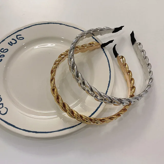 Elevate your hair game with a touch of glamour. This gold plated metal chain link headband, crafted with alloy metal, is more than an accessory; it's a statement. Shine bright with our versatile headbands, available in both gold and silver, offering a perfect blend of style and sophistication. Embrace the metallic trend and adorn your locks with a touch of luxury. Explore the allure of our Metallic Headbands collection – where every detail reflects your unique elegance. 🌟👑